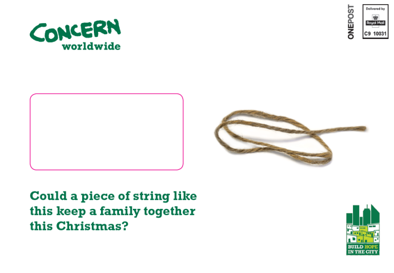 So our appeal led with this 'detail'. In the MV version of the pack, a real piece of string was tipped onto the letter. It allowed donors, who were likely completely unfamiliar with the issues, to instantly understand what was at stake.